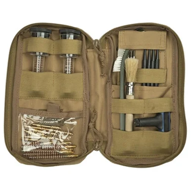 Birchwood Casey rifle and handgun range cleaning kit has everything you need to quickly clean your firearms. Portable zippered case with molle webbing for transport. Contains brushes, jags, picks and pull through cleaning cable for today’s most popular calibers.