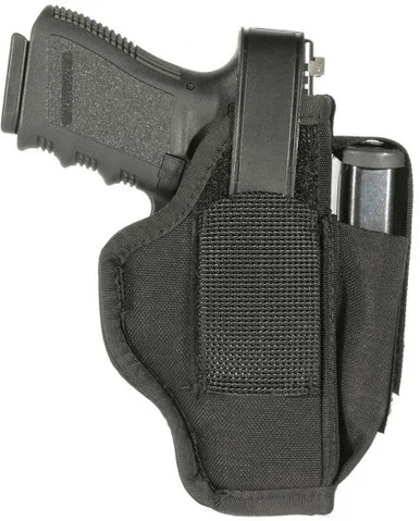 TheBlackHawk Ambid Holster w/ Mag Pouch – 3-4 in Barrel Med Autohas a clever design that lets you choose how you want to use it on a daily basis. Wear theBlackHawk Ambidextrous Holster w/ Magazine Pouchas a belt holster, on either right or left side, throughBlackHawk’s unique injection molded belt loops that also act as covers for the reversible retention strap and thumb break. TheseBlackHawk Ambid Holsters w/ Mag Pouch – 3.0 – 4.0 in Barrel Medium Automaticscan also be worn as an Inside-the-Pants holster with the spring steel removable clip that secures it to your waistband.