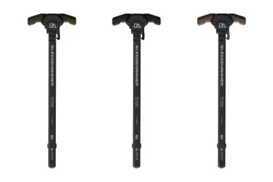 Breek Arms Sledgehammer AR-10 Ambidextrous Charging HandleThe NEW Sledgehammer Charging Handle byBreek Armsis now in AR-10 / LR-308. The Sledgehammer is the ultimate solution for enthusiasts and professionals seeking top-tier performance and unparalleled reliability, especially when shooting suppressed. Crafted with precision, this feature-rich charging handle offers reliable high performance at an approachable price point resulting in unmatched value for shooters.Built using industry leading aerospace grade 7075-T6 aluminum, the Sledgehammer combines rugged durability with unmatched functionality. The Sledgehammer features robust serrated latches for effortless and secure manipulation as well as a wider footprint for quick, smooth operation in any situation.With more gas-reducing features than any other charging handle on the market, the Sledgehammer excels at porting gases away from the shooter’s face. Theunique design elements effectively mitigate excess gas pressure away from the shooter’s face, enhancing the shooting experience.Higher raised shelf at the rear of the upper receiver to block gas from the shooters faceInnovative keyway cutout to prevent gas from flowing over the rear shelfInternal baffling inside the stem to create turbulence and slow gas expansionBack pressure port and aggressive relief cuts on the top and bottom to direct gases away from the shooter’s face