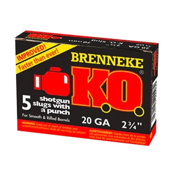 The Brenneke K.O. Slug offers power and accuracy along with the confidence of a quick, clean takedown. It is one of the least expensive sabots on the market and offers 58% more frontal area than standard .50 cal slugs. This offers massive energy transfer as well as deep penetration and expansion. This slug is great for deer, wild boar, coyote and other medium game. Brenneke has been a leader in the development of hunting ammunition since 1895 and is headquartered in Germany. Brenneke USA was formed in 1995 and continues to offer the outstanding quality and reliability of Brenneke products in America.