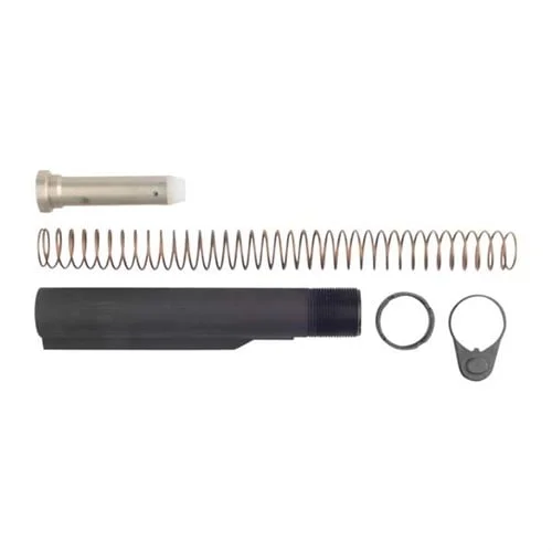 - Includes Mil-Spec receiver extension/buffer tube, receiver lock plate, lock-nut/castle nut, carbine buffer and carbine buffer spring