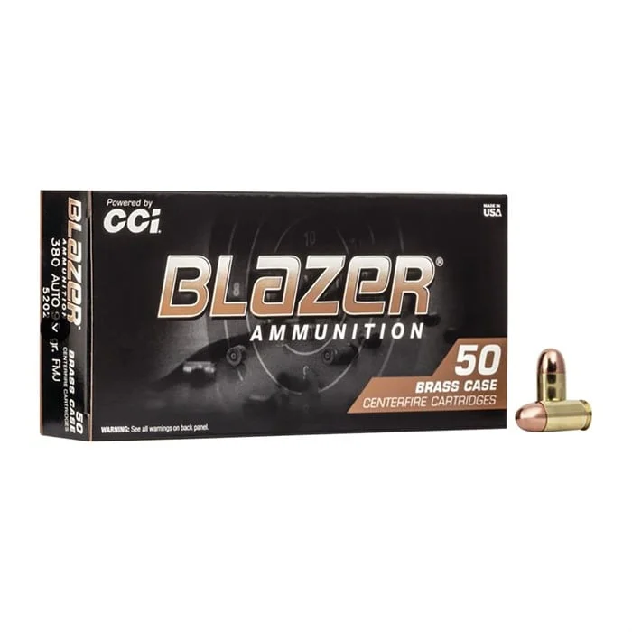CCI Blazer Brass 380 Auto features a 95-grain FMJ bullet at 945 fps, known for reliable feeding and performance. FMJ bullets are great for high-volume shooters due to their affordability and reliability. Available in 50-round boxes and 1000-round bulk cases. CCI is well-regarded for its consistent quality and innovative ammunition, favored by both recreational and competitive shooters.