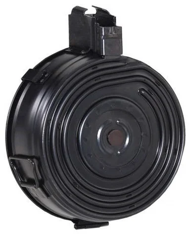 This 75-round drum magazine works with all AK style rifles and pistols that accept high capacity mags. Dimensions are 7.75″ x 6″ x 2.25″. Weighs 2.25 lbs. empty, 5.05 lbs. loaded.