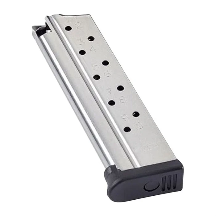 - The extended tube design allows the use of a longer, stainless steel spring and improved spring life over traditional extra capacity 1911 magazines.The all metal, anti-tilt follower is durable and easy to load while the polymer baseplates remove easily for cleaning and maintenance.