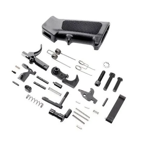 Complete kit contains every internal part needed to complete or rebuild an AR lower receiver. High-quality components are designed to work in coordination with each other to ensure smooth operation, and they come packaged in color-coded bags that organize related parts for easy assembly. Includes molded-polymer A2 pistol grip, Mil-Spec trigger that offers a conventional, single-stage 6 to 6½ lb. service rifle pull.