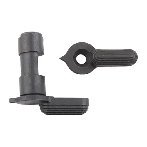 Safety selector drops in to standard AR-15 and DPMS-pattern .308 lower receivers to give ambidextrous function. Opposite-side lever secures with set screw ad can be easily installed or removed. Ridges give positive purchase for fast operation.