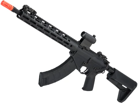 The CYMA AR47 is a hybrid gun that at its core is an AR15/M4 platform based on the venerable Tokyo Marui Version 2 Gearbox but with a sprinkling of AK flair. This essentially allows you to run an AK like setup, but with the ergonomics and modularity of an AR15. This also gives the rifle a plethora of upgrades and customization internally and externally as both the AR15/M4 rifle platform and Ver.2 gearbox are among the most popular in the industry.