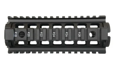 Dirty Bird AR-15 2-Piece Drop-In Quad RailThe Dirty Bird AR-15 2-Piece Drop-In Quad Rail is a 2-piece, non-free floating upgrade that installs in seconds for your AR-15. The Dirty Bird 2-Piece Quad rail makes use of therifle’s classic, mil-spec stylebarrel nut, delta ring assembly, front sight base and round handguard end cap. Machined from 6061 hardened aluminum and given a mil-spec anodized finish for durability, theDirty Bird Quad Rail provides true M1913 Picatinny rails at the 3, 6, 9, and 12-o’clock positions for the mounting of lights, switches, foregrips, and more. QD Swivel Sockets are machined at the front and the rear of the rail at the 3 and 9-o’clock positions. The rail is also T-Marked on all sides for location of attachments.SpecificationsMaterial:6061-T6 AluminumLength:6.25″ and 11.5″Gas System Compatibility:Carbine Length – 6.25″ & Midlength – 11.5″Made in the USADirty Bird Industries’ Limited LifetimeWarrantyAvailable ColorsBlack, Magpulâ„¢ FDE, Magpulâ„¢ OD Green, Midnight Bronze, Sniper GreyDoes not come with barrel nut or delta ring assembly!