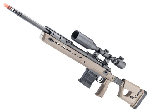 The Double Eagle M66 sniper rifle brings a touch of modern to a classic system. This rifle includes a metal barrel, receiver, and trigger group, with a top mounted 20mm rail for optics. Featuring a lightweight polymer M-LOK chassis with a folding stock, QD sling swivels, a forward mounted 20mm top rail for optical accessories, and an easy to reload magazine system, the M66 is a capable bolt-action Airsoft rifle for the modern Airsoft sniper. Double Eagle even went so far as to improve the internals with a CNC metal piston and spring guide