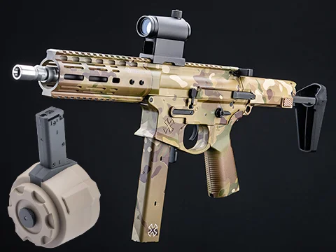 Magazine Capacity: 210rd Hi-Cap ( Mid-Capacity Mags Available Here; Compatible only with EMG Space Invader style magazines)