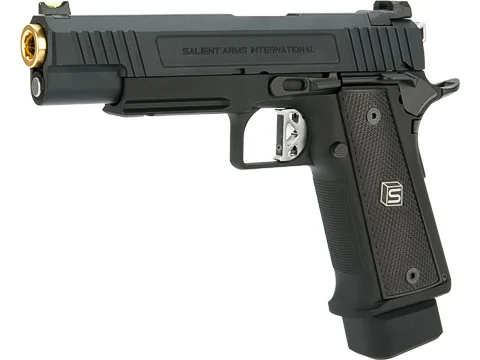 EMG has extended their collaboration with the Salient Arms and is proud to release the Salient Arms x EMG DS 2011 collaboration Airsoft Training pistol. Manufactured with an eye to detail the EMG SAI DS 2011 is CNC machined from aluminum alloy and features all of the trademarks of a Salient Arms pistol, incuding: a titanium nitride style barrel, competition style sights with fiber optic front insert, ambidextrous safety and, of course, stamped Salient Arms International rollmarks. Utilizing the Tokyo Marui Hi-Capa gas system, the Salient Arms / EMG DS pistol can be upgraded from a wide pool of available parts and components, ensuring easy repair and maintenance and years of reliable service.