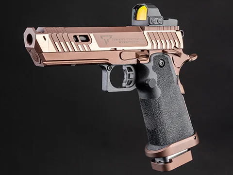 The real Sand Viper was designed to be the ultimate 2-gun / 3-gun competition pistol. It has proven itself as already the sickest serpent on the planet, holding the overall win at the USPSA 2-Gun Nationals. The airsoft replica follows its cues and puts together a pistol ready to take on even the most fierce of opponents. These guns are tailor designed to fit and feel exactly like the guns Taran has used to build his legacy. Be careful of its hidden fangs!