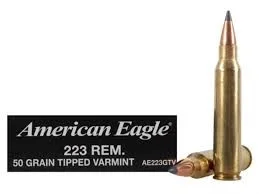 Federal American Eagle Ammunition is designed specifically for target shooting, training and hunting. This ammo is loaded to the same exacting tolerances as Federal Premium Ammunition offerings, but at a more practical price for high volume, economical varminting. The polymer tipped bullet increases the ballistic coefficient of the bullet making this ammunition ideal for longer range varminting. This ammunition is in new production in reloadable brass cases.