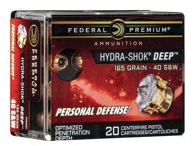 Federal Premium Personal Defense line provides consistent expansion, optimum penetration and superior terminal performance with bullet weights and propellants optimized for the most efficient cycling and accuracy in subcompact handguns. The Hydra-Shok Deep builds off the time-tested platform with design improvements that better meet modern performance measurements. The bullet features a more robust center post and a core design that penetrate to optimal depths through the barriers most commonly encountered in self-defense situations.