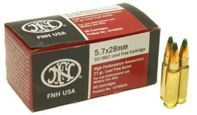 FNH USA (Fabrique Nationale Herstal) is a global leader in the development and manufacturing of reliable, innovative, and high quality firearms for military, law enforcement, and commercial customers. The SS198LF is a lead free hollow point round that incorporates a totally lead free primer and projectile. Intended for use on indoor ranges or wherever potential lead contamination is a concern.
