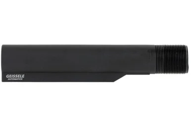 Geissele Premium MIL-SPEC Buffer Tube, 7075-T6, AR-15/M4 – BlackThe Geissele Premium Mil-Spec Buffer Tube is machined from quality 7075-T6 Aluminum and finished in Type 3 Hardcoat Anodize, available in Black or Geissele’s DDC. This rigid and durable buffer tube conforms to all mil-spec standards and features 6 stock positions. This carbine length and mil-spec diameter Premium Buffer Tube is made in the USA and weighs in at 3.7oz, making it the perfect fit for your AR-15 lower and ensuring compatibility with most mil-spec diameter quality ARR15 stocks.Includes7075-T6 Mil-spec Buffer TubeCastle nutEnd plate.