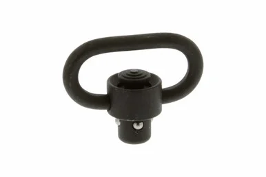 The GG&G Enhanced Quick Detach Sling Swivel features all heavy-duty components, a large QD release button, a heavy duty retention wire that accommodates sling webbing up to 1 1/4, and a mil-spec manganese phosphate finish. The QD release button has even been custom CNC machined with concentric tactile grooves for a more precise and positive finger placement.