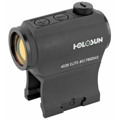 Holosun HE403B-GR Elite Green Dot SightThe HE403B-GR is an Elite version of our HS403B small compact micro red dot optic. Employing Holosun’s new Green LED technology, the lifetime for one CR2032 battery can be up to 5 years and has up to 4x more efficiency when used the high brightness settings! This optic features our “Shake Awake” technology that powers the optic on with slight movement of the unit. It may be installed on various firearms such as shotguns, pistols ,air rifles and crossbows. The HE403B-GR is compatible with standard mounts.Features:Designed for day and night use2 MOA on dot sizeUnlimited field of viewParallax-free with unlimited eye reliefSpecifications:Model: 403BFit: 1913 Picatinny RailType: Red DotFinish/Color: BlackSize: 2MOA Dot