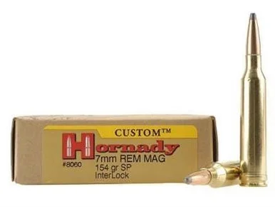 Hornady 7mm Rem Mag Ammunition Custom H8060 154 Grain Soft Point 20 rounds