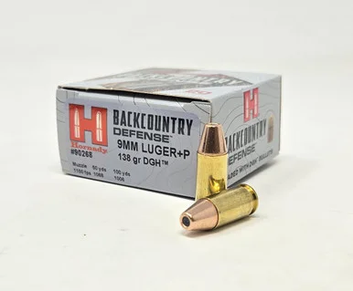 For those backcountry encounters when a reliable round can be a lifesaver, Hornady introduces Backcountry Defenseâ„¢ ammunition. Featuring the DGHâ„¢ (Dangerous Game Handgun) bullet, providing maximum penetration and no deflection, Backcountry Defenseâ„¢ delivers peace of mind from your favorite backcountry sidearm. Available in popular cartridges from 9mm up to 500 S&W.