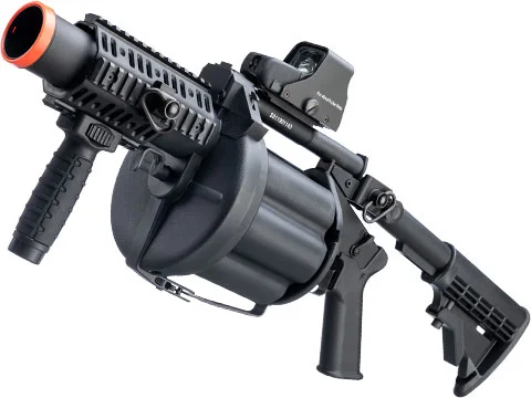 It is time to upgrade your squads firepower. Modern warfare requires highly flexible, tactical, and lightweight firearms. The ICS MGL Revolver Grenade launcher is designed to achieve this goal when compared to traditional grenade launchers. Pack the ultimate in firepower with 6 fully-loaded grenade shells and the ability to fire them one after another quickly and efficiently.