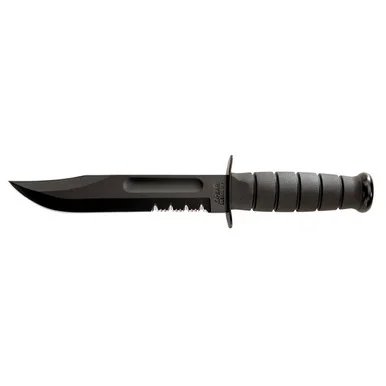 A partially serrated edge makes cutting looped and synthetic materials a breeze. Blade marked 1211. Hard plastic MOLLE compatible sheath included.