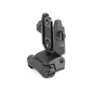 Kriss USA Low Profile Polymer Flip Up Rear SightrThe Kriss USA Low Profile Steel Flip-Up Rear Sight is the equivalent OEM rear flip-up sight standard on the Kriss Vector and DKM22 firearm platforms, making it a top choice for those looking to upgrade their AR15 flip-up sights. This AR15 accessory is renowned for its ultra-low profile, neatly folding out of sight and maintaining a sleek .56″ height when in the stowed position. This specific rear sight has dual apertures and offers extensive windage adjustments, making it an essential and versatile piece among AR15 accessories. It features a large textured adjustment knob, ensuring that modifications to windage are uncomplicated and can be easily performed even with gloved hands.rFeatures:rrLow Profile Flip Up Rear Sightr2.25″ length foldedr1.19″ width at baser1.19″ width at bodyr.56″ folded heightrSame sight that comes with the Vector