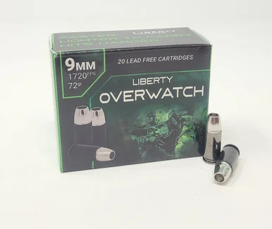 Liberty 9mm +P Ammunition Overwatch LAOW9MM721700 72 Grain Hollow Point Lead Free 20 Rounds