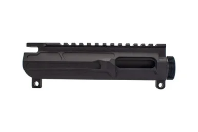 Lightweight Stripped Billet 9mm Upper ReceiverThe AR-9 Lightweight Billet Upper Receiveris a quality, American made billet upper designed to be used on Pistol Caliber Carbine (PCC) builds. Most often PCC builds are either 9mm or .45 ACP. This billet upperfeaturesa unique design that sets it apart from traditional forged upper receivers. Manufactured to exactingstandards on five axis CNC machines from a solid block of aircraft grade aluminum, this stripped upper not only looks good… it is built to last.Features7075-T6 Billet AluminumNoFeedrampsLow Profile Brass DeflectorCompatible with mil-spec forged lower receivers and most billet lower receivers.250 takedown / pivot pin holesNo forward assistWeight: 7.1ozMade in the USA