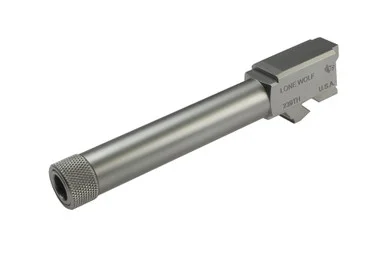 Lone Wolf LWD M/23/32 Threaded 9MM Conversion Barrel – StainlessrLone Wolf 9mm conversion barrels allow you to shoot 9mm ammunition from your 40 S&W or 357 Sig pistol. These conversion barrels are easy to use and install the same as any other barrel, simply drop it in, no gunsmithing or other modifications are required. We do recommend the use of the correct 9mm magazine with these conversion barrels to guarantee reliable feeding. Use G19 9mm mag for G23 and G32 conversion.Lone Wolf replacement barrels are manufactured from the highest grade mill select 416 stainless steel. CNC machined and heat treated, providing a lifetime of service and unparalleled accuracy at an affordable price. The standard groove and land rifling make this an excellent choice for those who wish to shoot lead, plated or jacketed bullets. Can be used in factory ported or stock pistol. Intended for use in the Glock 23 or 32 conversion to 9mm pistol. Threaded 1/2 x 28 to fit popular suppressor manufacturers.PLEASE NOTE: Using this barrel in a Generation 4 Glock may cause malfunctions while using the standard Glock recoil spring assembly.Special features include:rrReady to use, pre-fit drop in. No gunsmithing requiredrFits Glock GEN1-4rPrecision machined from heat treated 416 stainless steelrLock-up area produces greater shot-to-shot accuracyrTighter dimensions than the originalrGlass bead, satin finish exteriorrMaximum chamber support, improved feed ramp designrButton rifled, standard crownrOk to use lead, plated or jacketed bulletsrIncludes thread protectorrProudly made in the USA