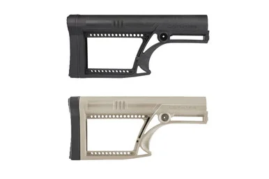 Luth-AR MBA-2 Skullaton Rifle StockrLooking for a replacement for your old and worn out A1/A2 rifle stock but don’t want something heavy and over complicated? The Luth-AR Skullaton buttstock assembly is the right choice for you as it takes the same design principle as the tried and true M16 rifle stock and improves upon it in only the necessary ways. It has a skeletonized structure made from glass filled reinforced nylon to reduce weight while still being extremely strong and attaches to the same A2 standard buffer tube. Another improvement that the MBA-2 has over the Mil-Spec fixed stock is the adjustable cheek riser, QD sling attachment points, and integrated castle nut with lock ring to ensure a rock-solid setup with no rattle. Install this new and improved buttstock to your 3 gun competition AR-15 or AR-10 and experience the simplicity and durability of fixed rifle stocks with ergonomics from the 21st century.Features:rrLight weight and durable glass reinforced nylonrSkeletonized structurerFits all .223 and .308 AR style rifles with rifle length buffer tuberComes with A2 buttstock screwrIntegrated castle nut and lock ringrCompatible with Luth AR cheek riserrCompatible with Luth AR butt plate assemblyrReversible QD sling slot (GT-CUP required)rrThe Luth-AR Skullaton rifle stock is built with competition in mind where simplicity and durability are key for consistent cheek welds and accurate shots. It only weighs 11.01 ounces, so you can use it all day and features a rubber butt pad to provide leverage and keep it locked into your shoulder. The butt pad can also be replaced with the Luth-AR butt plate assembly to further customize length of pull and angle. Additionally, you can add a cheek riser to get a consistent sight picture down your variable optic for those long-range shots.The Luth-AR company was founded by the same man who founded the DPMS and Panther Arms firearms companies. Randy Luth started as a machinist and built his way up to leading some of the most recognizable and respected companies in the firearms industry. The Luth company now owns seven patents for high quality AR-15/.308 components and accessories that are built for the competition shooter, hunter, and gun enthusiast.