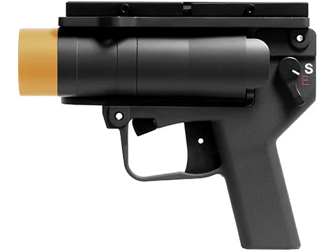 AGX is a pistol type of launcher. You can either use it as a pistol or mount it on your RIS. AGX’s design is based on the real AGC launcher but we make it only compatible with airsoft toy B.B. shower grenades.