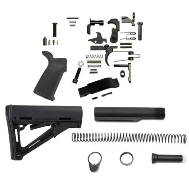 Magpul CTR® Lower Build Kit (Black)TheMagpulCTRAR 15 Lower Build Kitfrom Black Rifle Depot is everything you need to complete your lower build project. The Magpul Lower Build Kit includes a complete mil spec lower parts kit, m4 buffer assembly, Magpul CTR stock, Magpul MOE grip and Billet Enhanced Trigger Guard Kit. The Magpul CTR Lower Build Kit is has been tested throughout the industry and is backed with a limited lifetime warranty.IncludesMil Spec Buffer Tube KitMagpul MOE Grip(Black)Magpul CTRStock (Black)Billet Enhanced Trigger Guard Kit (Black)AR 15 Mil Spec Lower Parts KitComplete Mil Spec Buffer Tube Kit-This Buffer Tube Kit is the perfect way to finish out your lower receiver without breaking the budget! The lightweight and durable 6061-T6 aluminum 6-position receiver extension is proper MIL-SPEC dimensions to accept a wide variety of aftermarket stocks. A coated carbine spring and 3oz buffer help ensure smooth and reliable function. Kit includes end plate, castle nut, buffer tube, carbine spring, and buffer.Includes6-position 7075-T6 Aluminum Receiver ExtensionBufferCastle NutEnd PlateSpringMOE Grip (Black)The MOE Grip (MagpulOriginal Equipment) is a drop-in upgrade for the standard AR15 / M4 pistol grip. The ergonomic, hand-filling design combines anti-slip texturing with storage core capability. With a similar shape to a ‘medium’ sized MIAD, the one-piece reinforced polymer construction provides simplicity and a reduced cost while still maintaining the durability needed to withstand operational environments. The MOE Grip accepts optional Storage Cores for gear stowage and includes a basic grip cap. All mounting hardware included.FeaturesDrop In Upgrade For AR15/M16 Pistol GripOne Piece Reinforced Polymer ConstructionStorage Core Capability Accepts Optional CoresDesigned To Improve ErgonomicsAggressive Texture For Positive weapon ControlMAGPUL CTR Mil Spec Stock (Black)TheMagpulCTR (Compact/Type Restricted) – Mil-Spec model is a drop-in replacement buttstock for AR15 / M16 carbines using Mil-Spec sized receiver extension tubes. Designed for light, fast action, the streamlined A-frame profile avoids snagging and shields the release latch to prevent accidental activation.The CTR also features a supplemental friction lock system that minimizes excessive stock movement for enhanced weapon stability* and an ambidextrous QD sling mount that will accept any push-button sling swivel. The Mil-Spec model includes a standard 0.3″ thick rubber butt-pad, which provides positive shoulder purchase to prevent slippage even with body armor or modular gear.FeaturesDrop in replacement for the standard M4 stockFriction locking mechanism to minimize excess movementA-frame design with streamlined exteriorEnhanced strength and ergonomicsReinforced polymer constructionShielded operation leverPush button ambidextrousRubber butt padMagpul Enhanced Trigger Guard Kit (Black)TheMagpul MOE Enhanced Trigger Guard is a black anodized aluminum drop-in replacement for the AR15/M4 weapons platform. It features a shallow “V” shape for better glove use in tactical shooting or cold-weather operations. The EnhancedTrigger Guardis non-folding, has rounded edges, and fills the annoying “gap” at the rear of the standard trigger guard.Complete AR-15 Mil Spec Lower Parts KitLooking for the best AR 15 Lower Parts kit, Black Rifle Depot’sOEMAR 15 Lower Parts Kitis assembled with top tier quality American made parts . With a crisp 6.5LB pull with very little creep these AR 15 Lower Parts Kits make a great upgrade over a standard Mil-Spec AR 15 LPK. These AR 15 Lower Parts Kits are sourced and used by some of the top manufactures in the AR 15 industry. These are complete 31 piece kits and are compatible with AR 15 and variant lower receivers.All Parts Are Machined, No MIM Parts.LPK Parts IncludedBolt CatchBolt Catch PlungerBolt Catch Roll PinBolt Catch SpringBuffer RetainerBuffer Retainer SpringDisconnectDisconnect SpringHammer (Black Oxidize)Hammer PinHammer SpringMagazine CatchMagazine Catch ButtonMagazine Catch SpringA2 Pistol GripPistol Grip Lock WasherPistol Grip ScrewPivot PinPivot Pin DetentPivot Pin Detent SpringSelectorSelector DetentSelector Detent SpringTakedown Pin (Front & Rear)Takedown Pin DetentDetent Springs (2)Trigger (Black Oxide)Trigger GuardTrigger Guard Roll PinTrigger PinTrigger Spring100%American MadeLimited Lifetime Warranty*Warranty does not cover use with 80% lower.
