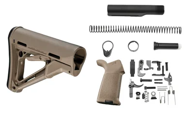 Magpul CTR Lower Build KitExperience top-notch performance and reliability with the Magpul CTR Lower Build Kit. This comprehensive package includes a Mil-Spec Buffer Tube Kit for exceptional recoil control and a MOE Grip, CTR Stock, and MOE Trigger Guard, all in a sleek Flat Dark Earth finish. With the inclusion of a complete AR-15 Mil-Spec Lower Parts Kit, this bundle ensures a seamless and efficient build process, delivering the utmost quality and functionality for your firearm.IncludesMagpul MOE Grip (FDE)Magpul CTRStock (FDE)Magpul MOE Trigger Guard (Black)Complete Mil Spec Buffer Tube KitComplete AR-15 Mil Spec Lower Parts Kit