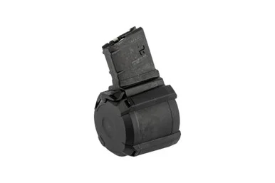 Magpul D50 PMAG 7.62 NATO/.308 Drum Magazine – 50 RoundThe PMAG D-50 is a lightweight, dependable 50-round .308 Win / 7.62 NATO polymer drum magazine for SR-25/DPMS pattern AR-308 compatible weapons. The PMAG D-50 offers 50 rounds of ammunition, allowing the same round count as two standard capacity 25-round magazines without requiring a critical reload. The unique drum configuration keeps the height of the magazine manageable as well as allowing for prone firing and easier storage. It is even fully compatible with longer-than SAAMI-spec match grade ammunition up to 2.830″ OAL including M118LR.Features an easy-to-use loading lever, paint pen dot matrix for easy marking, and a rear window for instant capacity indication. Designed to be left loaded for long term storage without any loss of function or degradation.Features:50-round CapacitySame height as 25-round PMAGs.308 Win / 7.62 NATONext-generation impact and crush resistant polymer constructionSeats fully loaded on a closed boltBolt hold open feature*Ratcheting Loading LeverFeed Tower compatible with most loading devicesAll components used are corrosion resistantEasy to disassemble for cleaningAnti-glare translucent windowPaint pen dot matrix panelDust cover includedReliably feeds rounds up to 2.830″ OALDPMS / SR-25 pattern1.7 lbs unloaded~4.5 lbs loadedMagpul continues to grow and develop based on innovation, simplicity, and efficiency. At Magpul, mission driven requirements inform their product design, materials, and manufacturing, focusing on efficiency without sacrificing quality or performance.*Note:Not optimized for bolt lock function on DPMS GII-pattern rifles.Not recommended for .260 Remington / 6.5 Creedmoor.