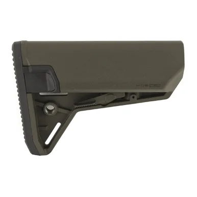 Magpul Industries, MOE SL-S Mil-Spec Stock, Fits AR-15 Rifles, Olive Drab GreenrThe storage-capable version of the flagship Magpul MOE SL carbine stock, the MOE SL-S (Storage) Stock is a direct replacement buttstock for AR15/M4 carbines. The sleek profile, dual-side release latches, and waterproof battery tubes make it the slimmest storage tube stock available. The SL-S provides an enhanced cheek weld and true, O-ring sealed, 10m waterproof storage area desired by many, but fits it into the narrowest package possible to allow a more upright head position and minimize bulk. A rolled toe and angled rubber butt-pad are optimized for use with body armor, and an ambidextrous QD sling swivel socket is included. A unique leaf-spring tension system provides a solid fit on mil-spec receiver extensions, with slightly less friction than the original SL. The MOE SL-S is the most intuitive, comfortable, and efficient storage stock available. Made in U.S.A.rFeatures:rrTwo water-resistant battery storage tubesrSloping cheek weld combines a slim profile with user comfortrInternal anti-rattle leaf spring