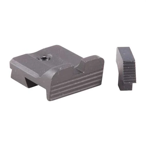 Front/rear sight combo replaces a 1911 Auto’s issue sights with a minimum of hassle. Blade overhangs the back of the slide for fast pick-up. Corners and edges are rounded. Mounts in factory dovetail.