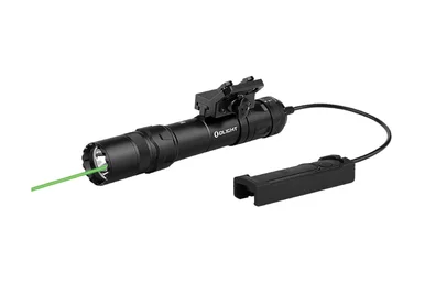 Olight Odin GL 1500 Lumen Rechargeable Rail Mount Flashlight with Green Laser & Side Rail MountFounded in 2007, Olight has established itself as a leading brand in the flashlight industry, renowned for its innovative designs and dependable performance. They offer a diverse range of illumination tools, including tactical weapon lights, everyday carry flashlights, headlamps and accessories. Olight products are engineered to deliver high lm outputs and feature high-efficiency batteries. The Olight Odin GL light with green laser exemplifies their commitment to quality and functionality. Constructed from aircraft-grade aluminum, it boasts a waterproof and impact-resistant design suitable for demanding environments. This versatile light offers four different modes with a maximum output of 1500 lm. Its rechargeable 21700 Lithium battery provides up to 6.5 hr of runtime, ensuring reliable performance over extended periods. Included with the Odin GL are a push-button tail cap, a remote pressure switch and a picatinny rail-mount, offering flexibility in how it can be used, whether as a handheld flashlight or mounted on a firearm with or without a pressure switch. This adaptability makes the Odin GL an essential tool for both tactical operations and everyday use.FeaturesProvides dual-light sources including a powerful white LED light and a green laser beam for precise aiming and target identificationProvides three mode options for versatile lighting needs, controlled by a selector ring on the headOffers effortless charging with a customized 5000 mAh 21700 battery and an MCC3 USB magnetic charging cableFeatures a remote pressure switch with dual-button magnetic attachment for quick light control without interrupting grip