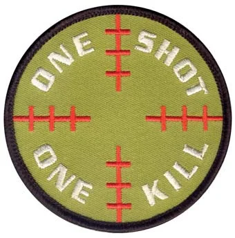 One Shot One Kill Patch with Velco backing. Size: 3.25″ Round
