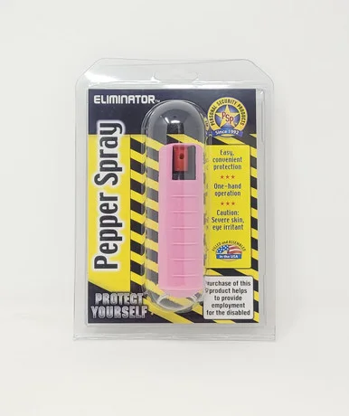 Eliminator Pepper Spray has an effective range of 12-15 feet, and incapacitates attackers with immediate severe burning sensation, confusion, and temporary loss of sight.