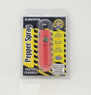 Eliminator Pepper Spray has an effective range of 12-15 feet, and incapacitates attackers with immediate severe burning sensation, confusion, and temporary loss of sight.