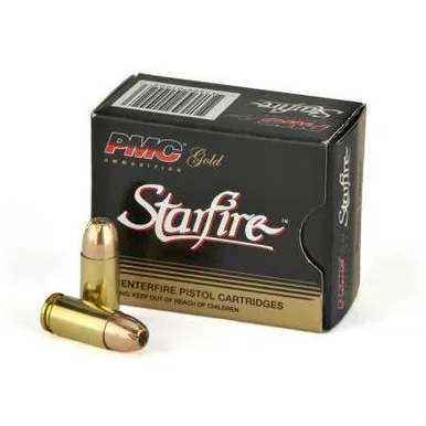 PMC Gold Handgun Ammunition is loaded with the high performance Starfire Hollow Point Bullet. The Starfire hyper-expands on impact to deliver more stopping power on target, combined with optimal penetration and excellent bullet integrity. It’s an unbeatable choice for home and personal defense or Law Enforcement. This ammunition is new production, non-corrosive, in boxer primed, reloadable brass cases.