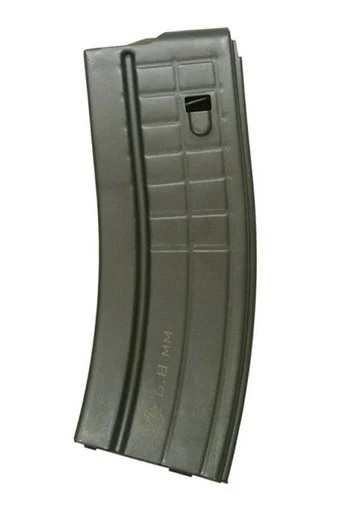 PRI Precision Reflex 6.8mm SPC waffle magazines with push button floor plate are constructed of butt welded steel halves to create the best internal volume for the magazine. We use Magpul anti-tilt follower with spring and push button floor plate allows for magazine to be quickly disassembled for cleaning. The 25 round magazine is 7.2″ in length. This is newer design, we have removed the Waffling from the outer edges of the magazine to quiet down the magazine and reduce follower drag.