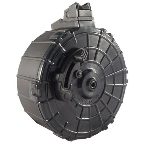 High-capacity drum magazines are great for three-gun competition—fewer mag changes mean faster times and better scores. Made from hard-wearing, injection-molded polymer for reliable service. Access cover keeps out dirt, dust, and debris, yet can be removed for cleaning or maintenance. Due to varying tolerances on Saiga shotguns, minor fitting may be required; fitting instructions included. 20-Rd model features a thumb activated slide assist to retain the spring to help you load rounds quickly.