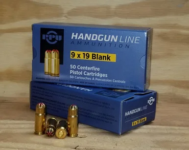 PPU manufactures many calibers of brass cased blank cartridges. Most are “full cased” which means they have an extended case shaped similar to a loaded round. This provides reliable functioning in all types of weapons. This 9mm Luger blank comes in a pack of 50 rounds per box, 20 boxes per case. Note: A correct blank firing adapter must be used on the gun to ensure semi- or full automatic operation.