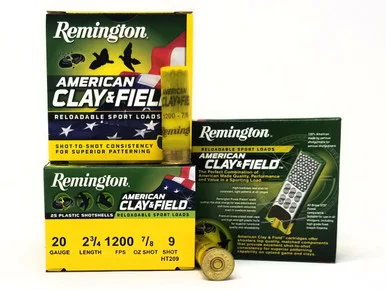 Remington 20 Gauge Ammunition American Clay & Field HT209 2-3/4″ 9 Shot 7/8oz 1200fps Case of 250 Rounds