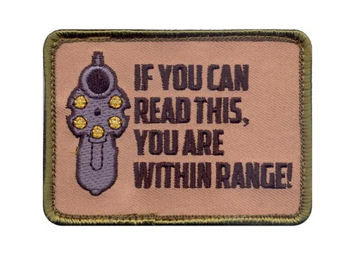 Let your foe know where you stand with Rothco’s “If You Can Read This, You Are Within Range” Patch. The 2.5″ X 3.5″ patch features a hook backing for easy attaching to caps or combat shirts.