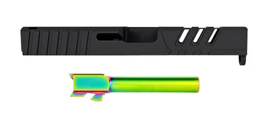 Pairing perfectly with the slide is our match-grade, drop-in 9mm barrel with a PVD Radioactive finish. Machined from 416R stainless steel and featuring a 1:10 twist rate, this barrel offers superior accuracy and long-term durability. The PVD coating not only enhances the aesthetics but also reduces friction and wear, helping to ensure smooth performance over extended use.