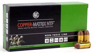 RWS 45 Auto Ammunition 135 Grain Frangible Copper Matrix 50 Rounds