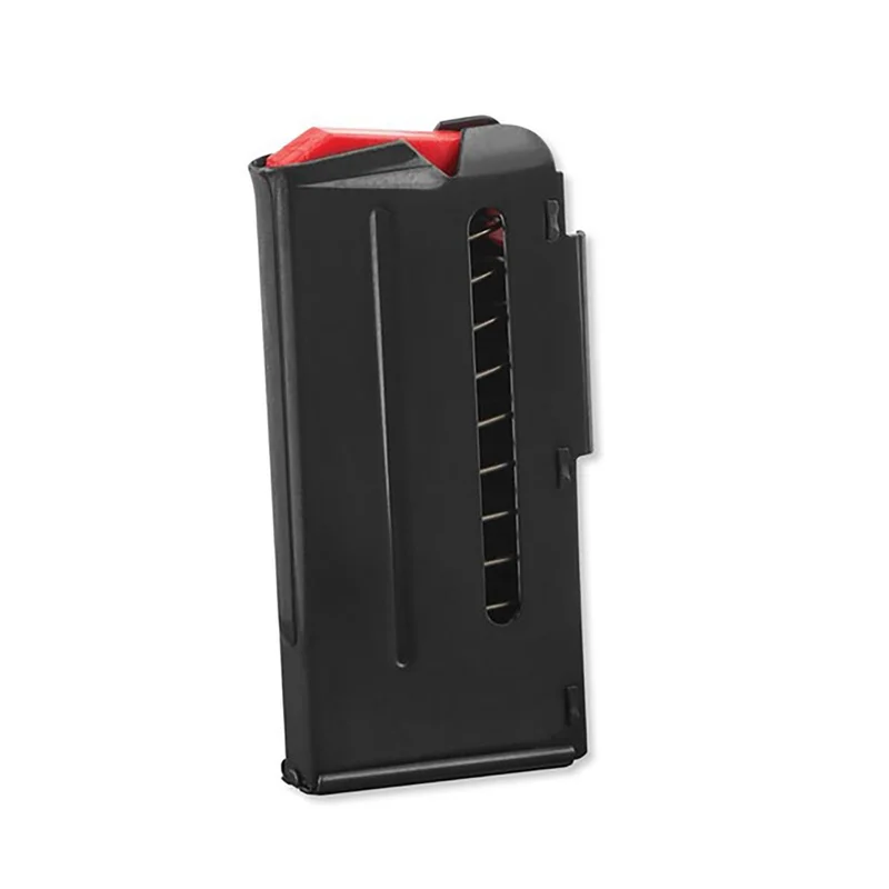 The Savage Model 93 series magnum magazine holds 10 rounds and is made from blued steel. This magazine is for .22 WMR and .17 HMR caliber rounds.